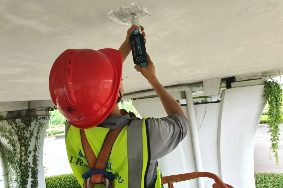 淮安大橋位于福州市三環(huán)路,跨越閩江,分為主橋和永豐互通式立交,是福州市重要的交通樞紐。橋梁檢測(cè)團(tuán)隊(duì)對(duì)橋梁進(jìn)行缺損狀況檢查、橋面線形檢測(cè)、混凝土強(qiáng)度、碳化深度和電阻率檢測(cè)、索力檢測(cè)及技術(shù)狀況等級(jí)評(píng)定,確保結(jié)構(gòu)穩(wěn)固。